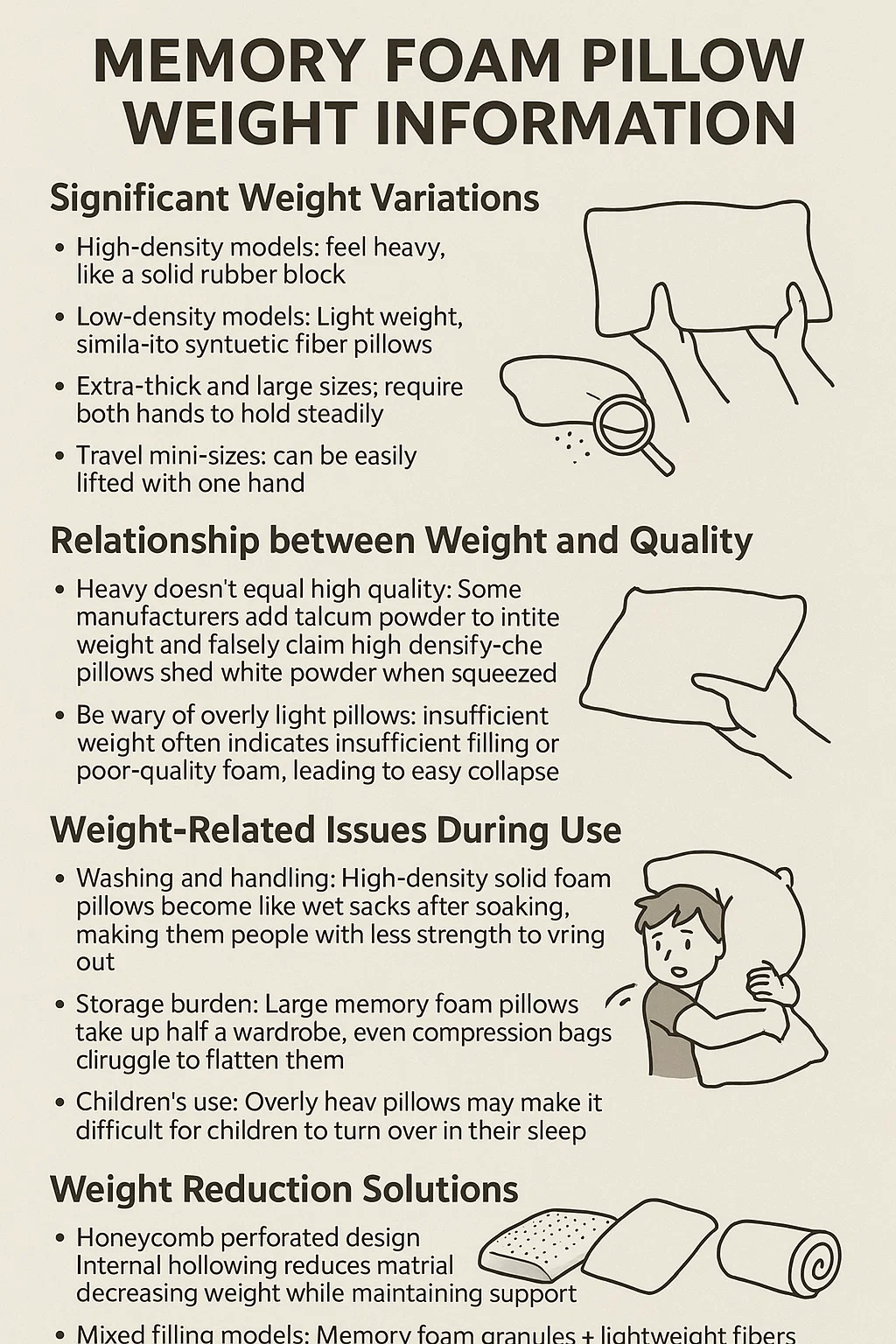 Cavete a nimis cervicalibus levibus: Insufficiens pondus saepe indicat insufficiens saturitatem vel spumum pauperem, ducens facilem ruinam.