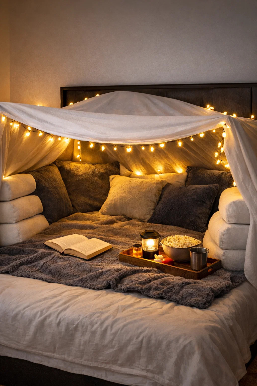 This approach works for kids setting up a reading nook, adults building a movie-night hideout, or anyone who wants a low-effort, high-reward cozy space without rearranging the whole room. The entire setup, once you know what you're doing, takes under ten minutes.
